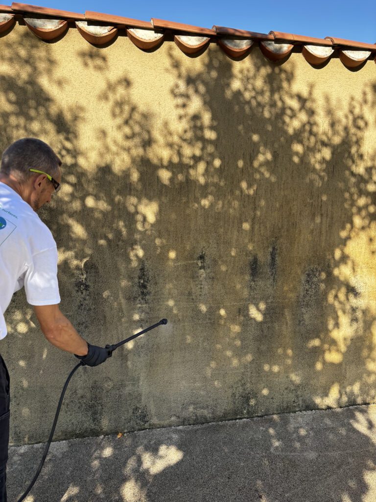 Par expérience, nous savons que la pollution végétale est souvent confondue avec la pollution urbaine ou est mélangée avec les salissures. Un simple nettoyage à l’eau ou à la haute pression ne suffit pas : il n’élimine pas la contamination dans l’épaisseur du support.